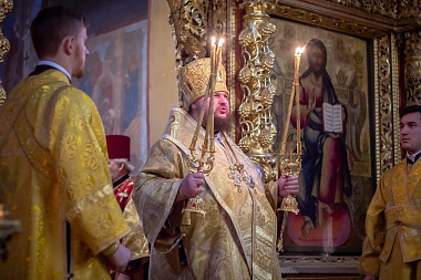По окончании Литургии было совершено молебное славление священномученику Ипатию, епископу Гангрскому, и святому апостолу Филиппу, после чего митрополит Ферапонт поздравил братию обители с престольным праздником и преподал архипастырское наставление собравшимся для молитвы в храме на начало Рождественского поста.