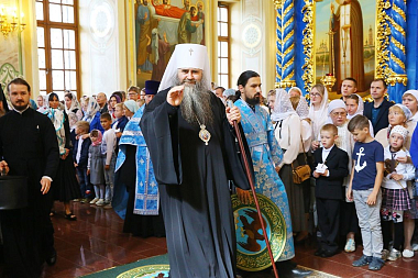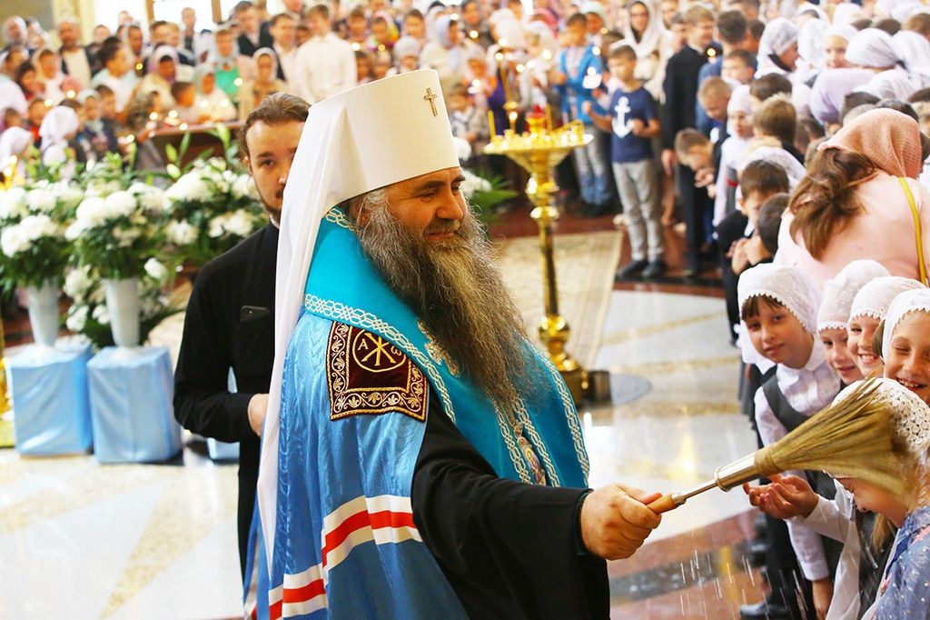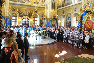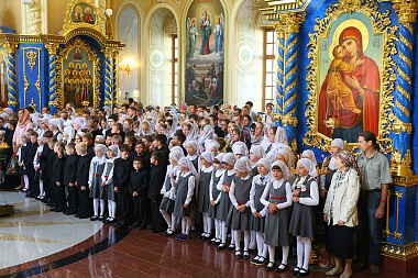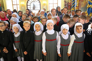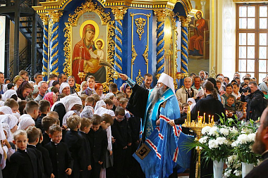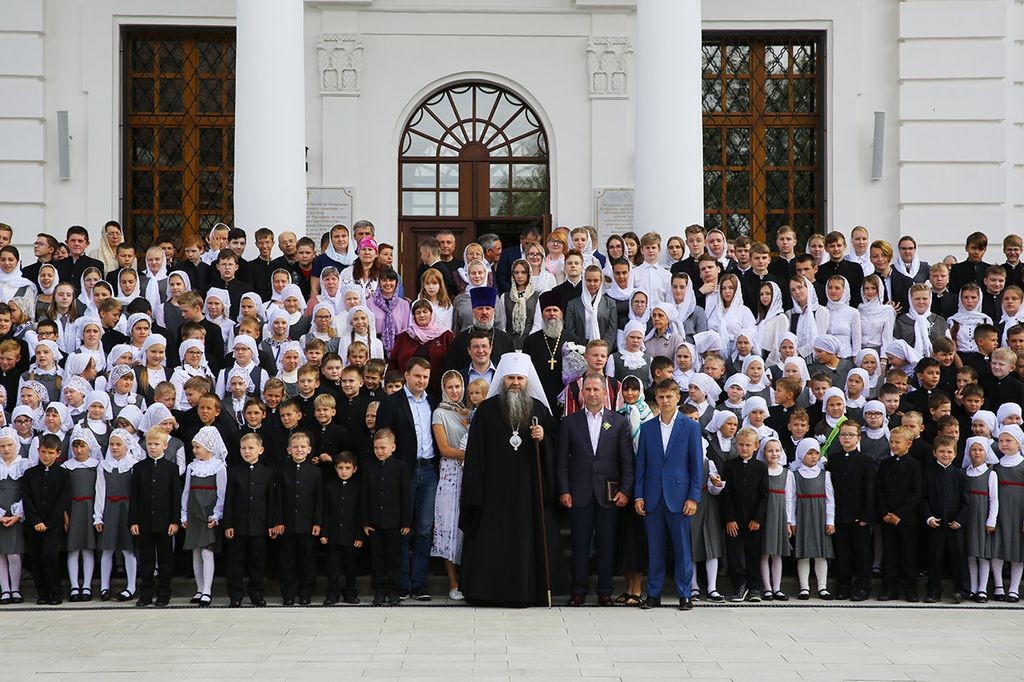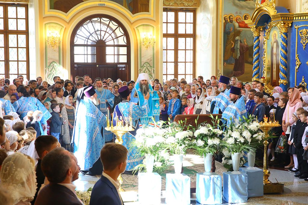 «Дорогие братья и сестры! В начале нового учебного года мы с вами собрались в городе Сарове под сенью благословенного Успенского собора Саровской пустыни с молитвой ко Господу, чтобы ваши учение, образование и просвещение были успешными. Дело образования многосложное и трудное, требующее усердия учителей, заботы родителей и старания детей. Пускай Господь Своей милостью покрывает ваши немощи, дает вам крепость знаний, усердие, трудолюбие. А когда люди живут в согласии с Богом, у них наступают мир и согласие, всё благоустраивается и благоукрашается. О приобретении мирности духа просите помочь преподобного Серафима, Саровского и всея России чудотворца, который оставил нам духовное наследие о том, что истинный смысл жизни на земле – это стяжание Духа Божия, стяжание Духа мирна. И я рад, что в эти святые дни мы собрались с вами в Успенском храме».
