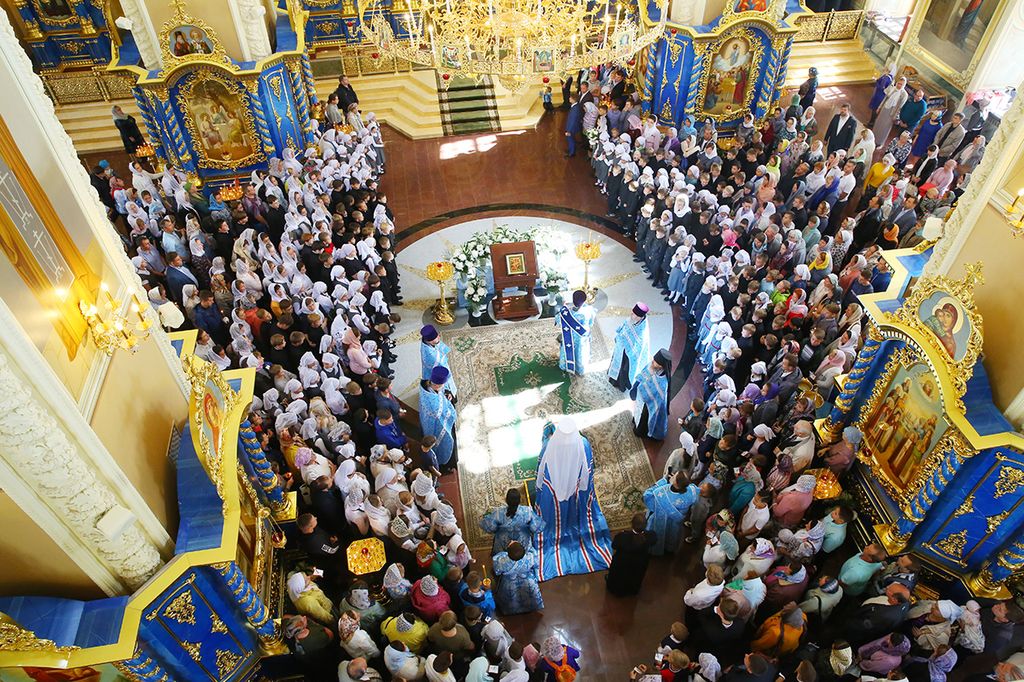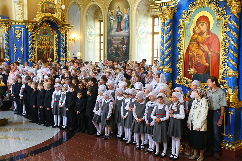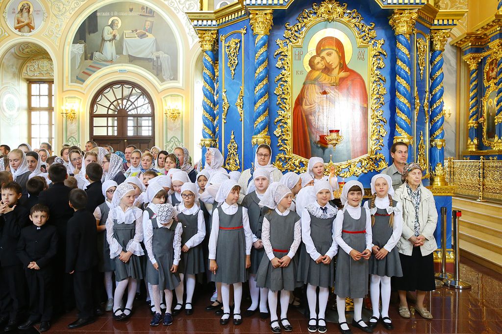 За богослужением вместе с многочисленными прихожанами молились учащиеся и преподаватели православной гимназии имени преподобного Серафима Саровского.