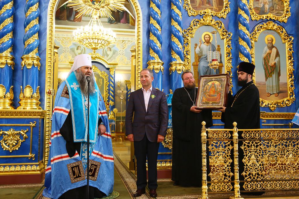 Владыка Георгий в знак благодарности и на память о Нижегородской земле преподнес заместителю главы Минэкономразвития келейную икону Успения Пресвятой Богородицы.