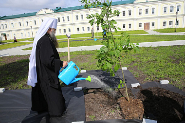 В завершение гости посетили келию преподобного Серафима Саровского в храме, освященном в его честь, и посадили деревья на территории обители.