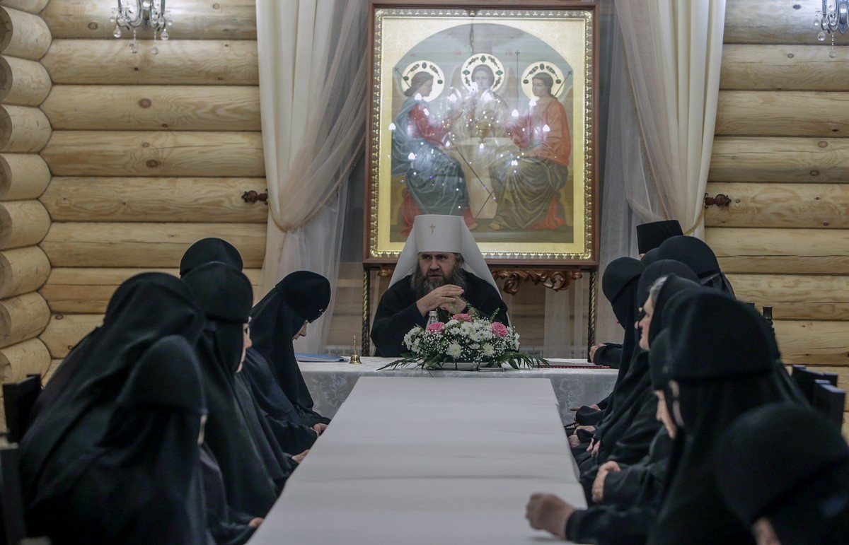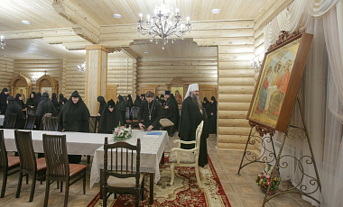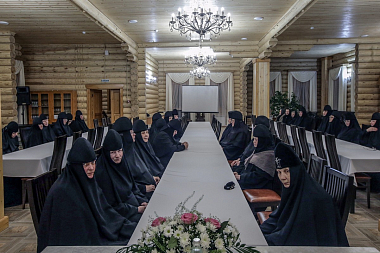 В ходе беседы обсуждались различные вопросы монашеской жизни. Во встрече участвовала настоятельница монастыря игумения Филарета (Шевченко).