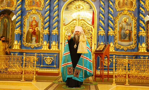 По окончании Литургии владыка произнес проповедь и поздравил с праздником братию и прихожан обители.