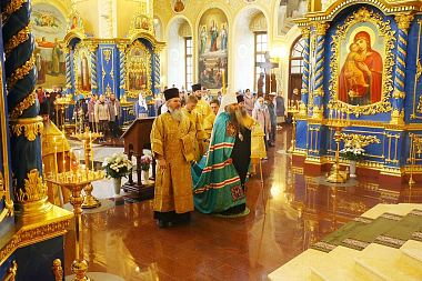 Его Высокопреосвященству сослужили настоятель Свято-Успенского монастыря игумен Никон (Ивашков), благочинный Саровского округа протоиерей Лев Юшков, руководитель отдела образования и катехизации Нижегородской епархии протоиерей Евгений Худин, руководитель административного секретариата епархии иерей Александр Тенькаеви и другие клирики епархии.