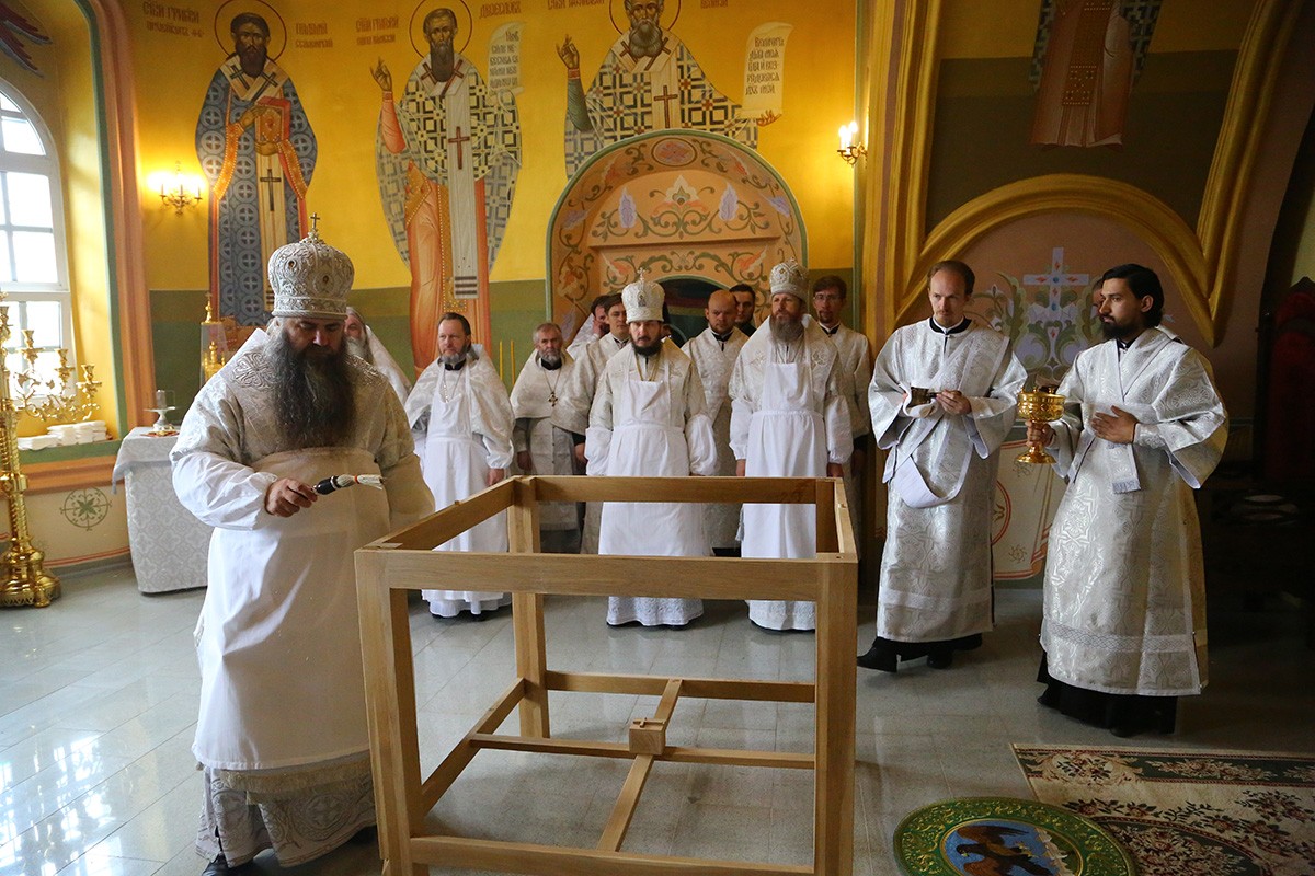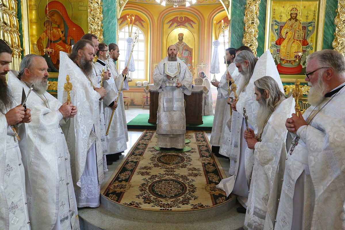 Освящение собора и литургия состоялись в день празднования Собору Архангела Гавриила. Владыка Георгий заметил, что видит в этом совпадении особый покров Царицы Небесной над этой обителью, Божию к ней милость: «Мы не выбирали эту дату специально. Сегодня, открывая святцы, я увидел, что сегодня праздник Собору Архангела Гавриила – высшего ангела из семи, которые предстоят пред Славой Божией. Именно Архангелу Гавриилу было дано возвещать тайные вести от Господа. Именно он возвестил Деве Марии главную весть от Бога для всего рода человеческого о рождении по плоти от Нее Господа Иисуса Христа. Он также явился Матери Божией перед Ее земной кончиной – Успением, утешая и преподавая Ей благословение».