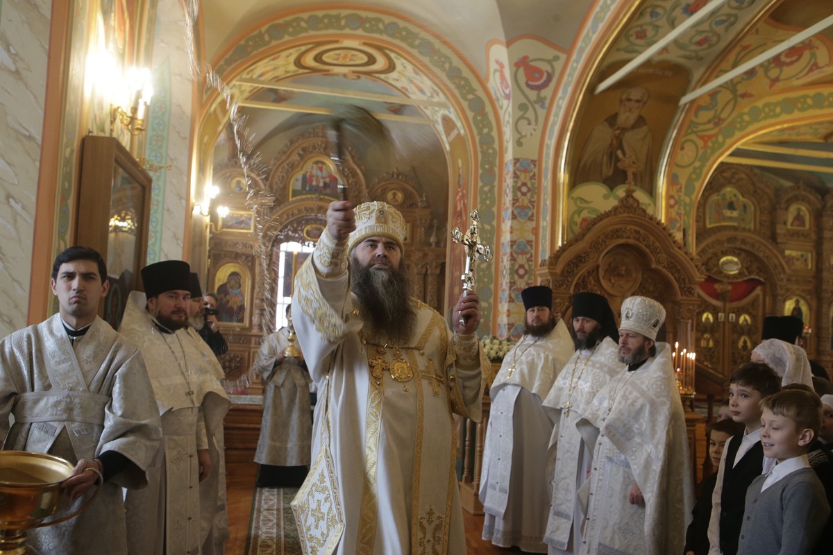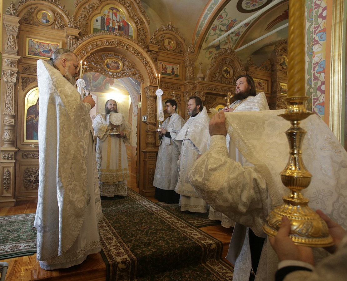 Затем во вновь освященном приделе была совершена Божественная литургия. Его Высокопреосвященству сослужило духовенство Нижегородской епархии и братия обители в священном сане. Во время Литургии была совершена хиротония иеродиакона Тимофея (Друца) в иеромонаха.