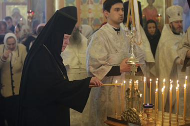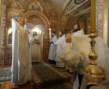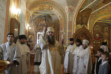 После Причастия перед иконой великомученицы Параскевы Пятницы владыка Георгий с сонмом духовенства исполнил величание святой.