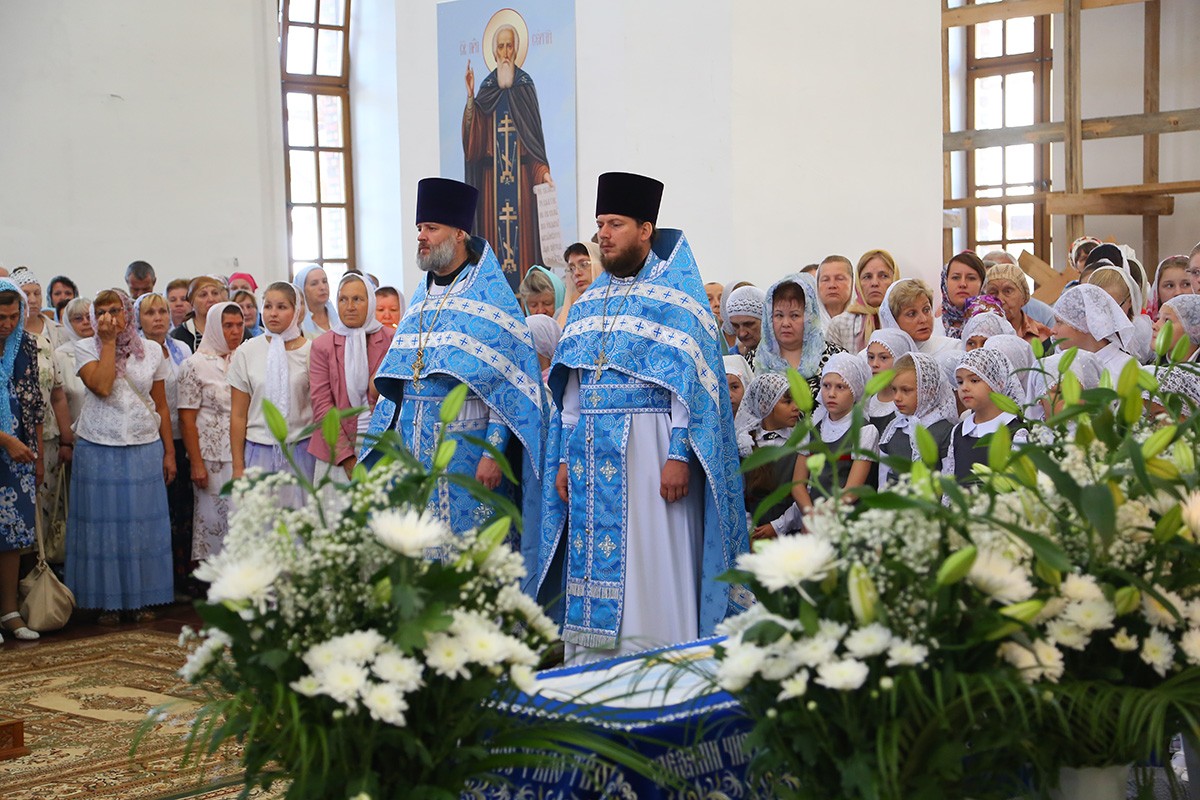 «Сегодня престольный праздник не только Свято-Успенского монастыря, – сказал владыка Георгий, – это престольный праздник всего города Сарова. На наших глазах восстает из небытия жемчужина обители, где подвизался батюшка Серафим, где покоились его святые мощи. Вспомните, как мы молились сначала на зеленой траве на месте разрушенного собора, затем на фундаменте, потом – в стенах неустроенного храма. Сейчас мы видим, как стараниями многих людей храм благоукрасился. Если угодно Богу, в следующем году Успенский собор будет освящен. В Сарове есть многое для личного спасения: и пастыри, и храмы. Дай вам, Господи, как и всем людям Божиим, укрепления в Христовой вере, чтобы сердца ваши были чисты, сокрушенны и смиренны».