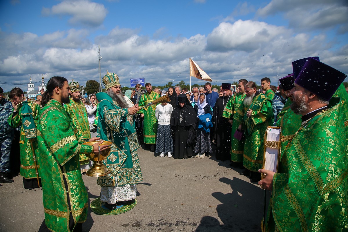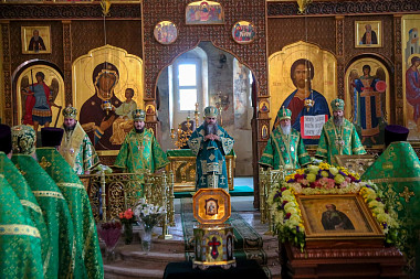 По окончании Божественной литургии состоялся крестный ход вокруг обители с преднесением ковчега с честной главой и образом преподобного Макария.
