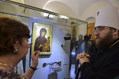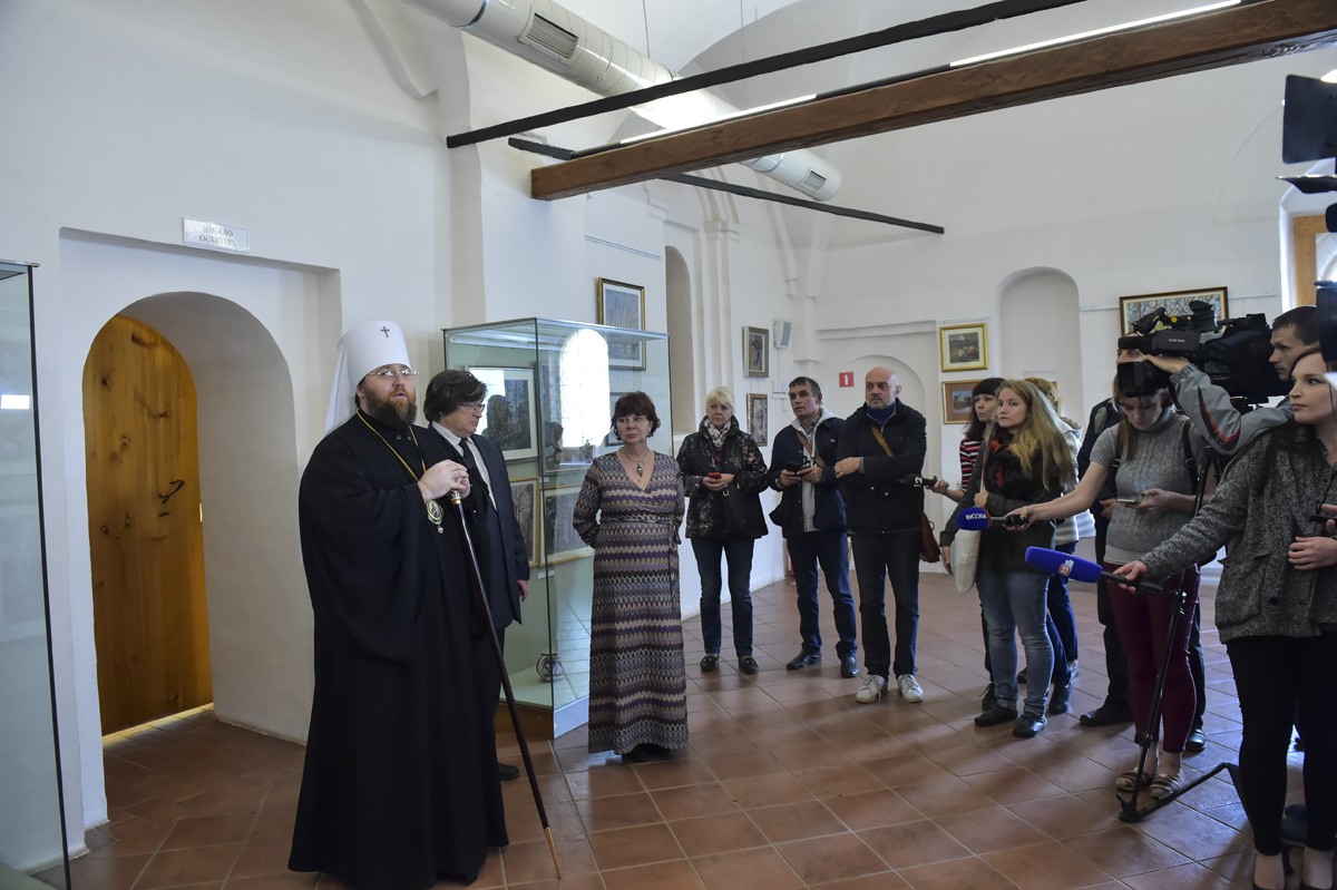 Владыка Игнатий поприветствовал всех присутствующих с открытием в эти юбилейные дни значимой экспозиции древних, веками намоленных святынь, поблагодарил директора музея М. Шаромазова за проявленную инициативу и руководство Третьяковской галереи за согласие доставить иконы на их историческую родину.