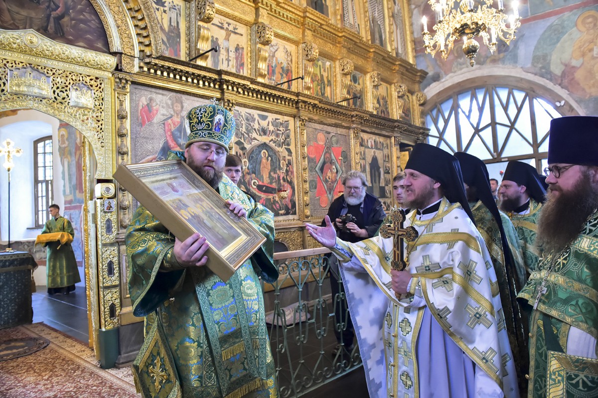 Затем в Трапезной палате музея глава Вологодской митрополии митрополит Вологодский и Кирилловский Игнатий принял участие в открытии экспозиции двух икон: образа преподобного Кирилла, написанного при жизни святого его учеником прп. Дионисием Глушицким, а также иконы «Богоматерь Одигитрия» конца XIV века, которую по преданию принес из Москвы на Русский Север сам прп. Кирилл Белозерский.