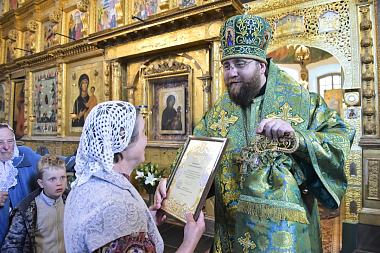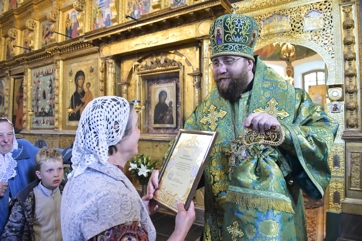 В престольный день обители правящий архиерей Вологодской епархии удостоил архиерейскими грамотами директора Кирилло-Белозерского музея-заповедника М.Н. Шаромазова, братию и прихожан.