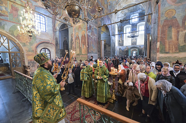 По прибытии в монастырь митрополит Игнатий поклонился раке с мощами преподобного Кирилла Белозерского, а затем в сослужении братии монастыря в священном сане, насельников Новоспасского ставропигиального мужского монастыря Москвы и клириков Вологодской епархии в Успенском соборе обители совершил праздничную Божественную литургию.