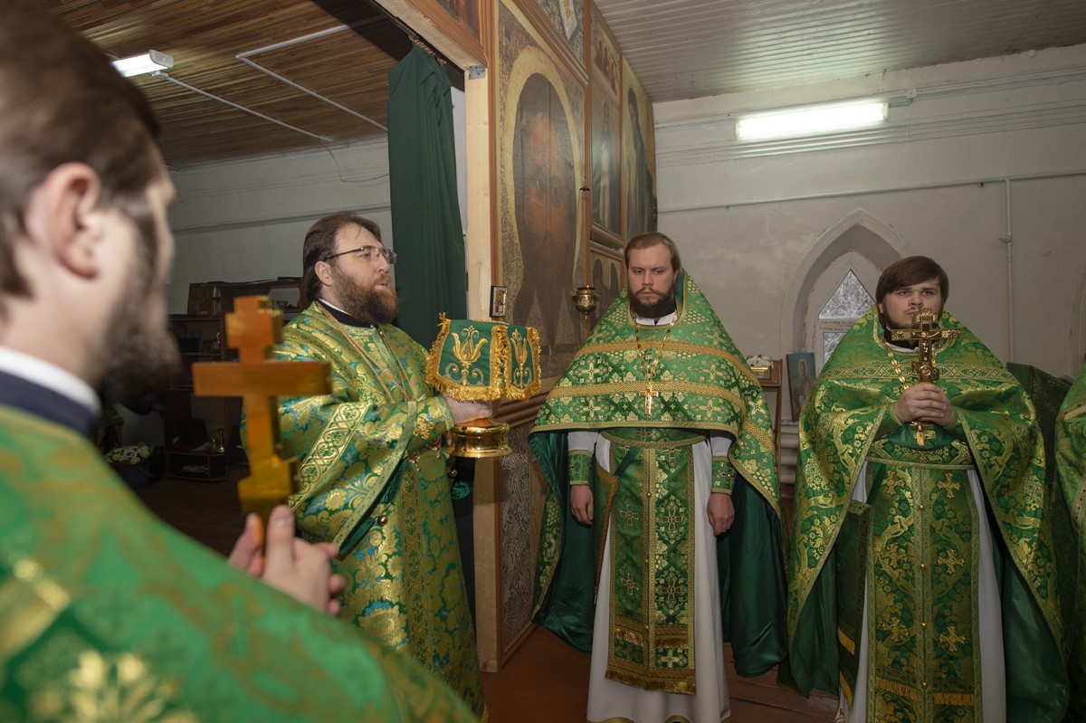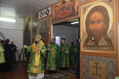 К престольному дню митрополит Игнатий удостоил благочинного Заоникиевой пустыни иеромонаха Мартиниана (Киселева) правом ношения наперсного креста, а иеродиакона Амвросия (Кузьмина) – правом ношения двойного ораря.