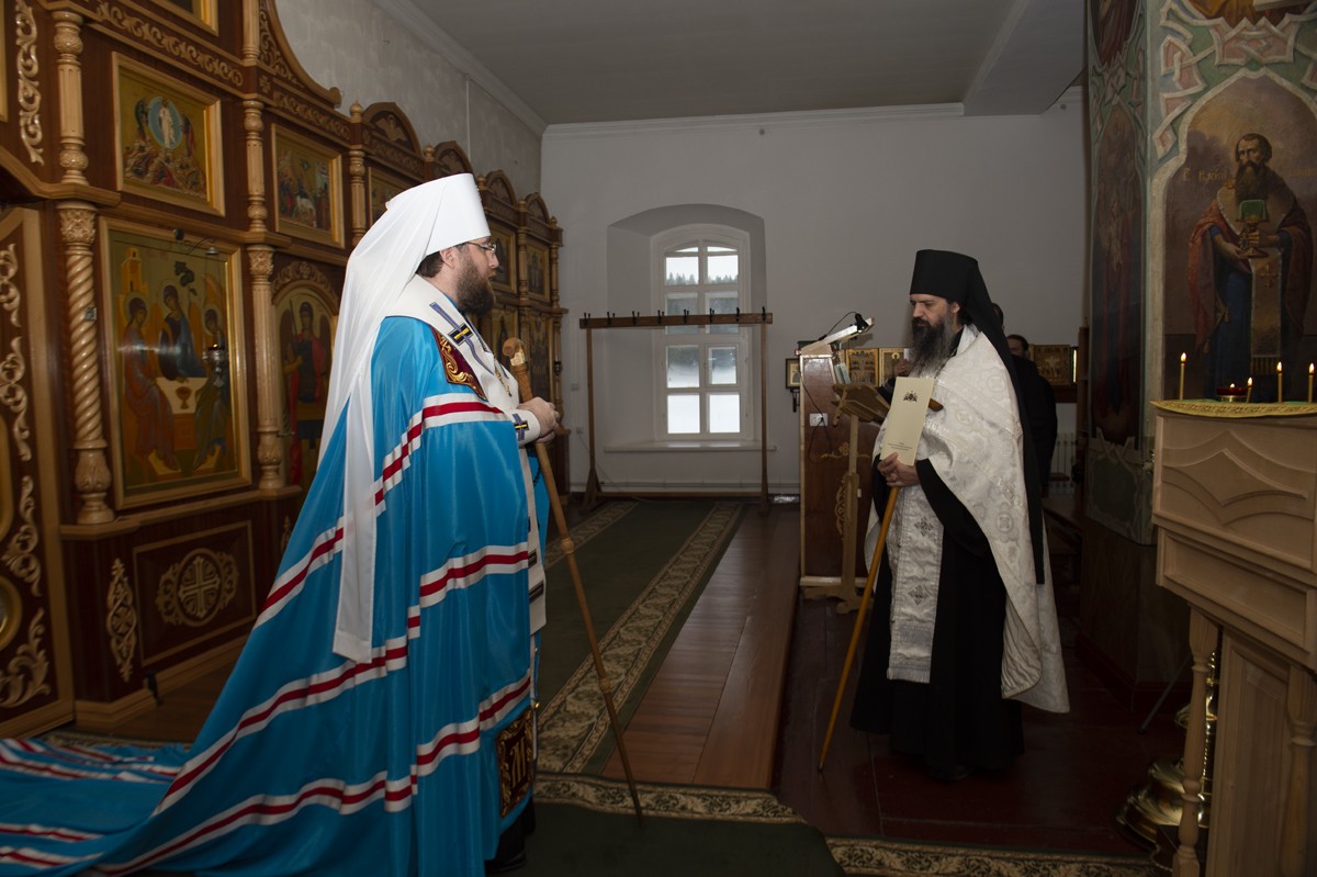 В связи с вступлением игумена Игнатия (Молчанова) в управление Свято-Троицким Павло-Обнорским мужским монастырем митрополит Вологодский и Кирилловский Игнатий совершил чин поставления его во игумена обители с вручением игуменского посоха.