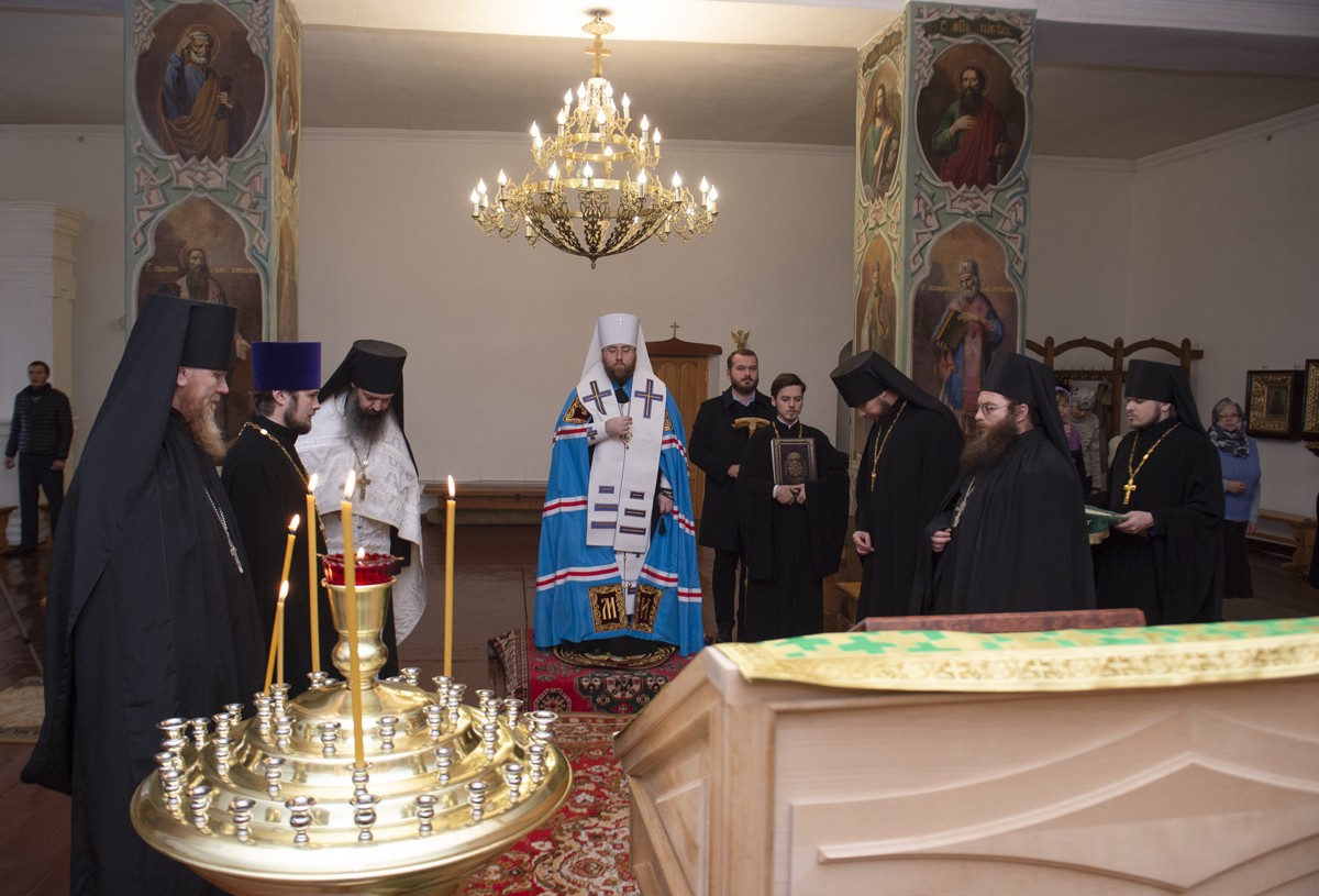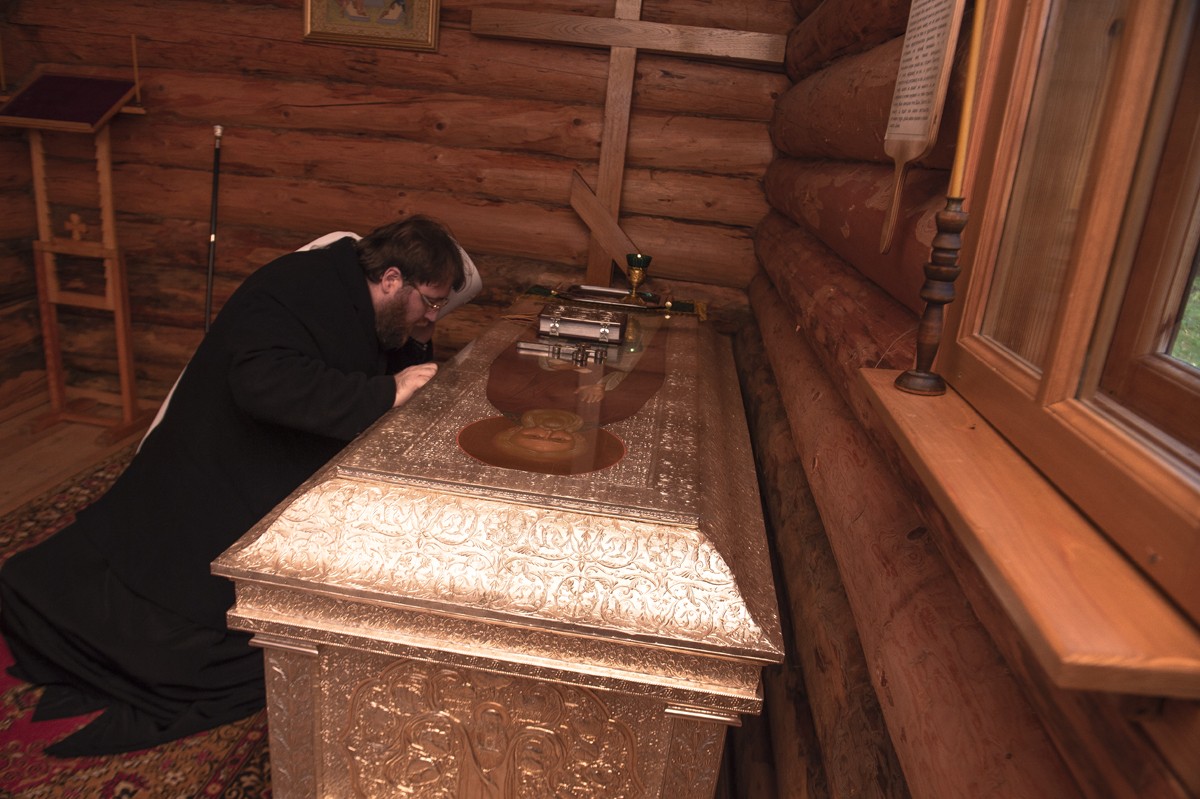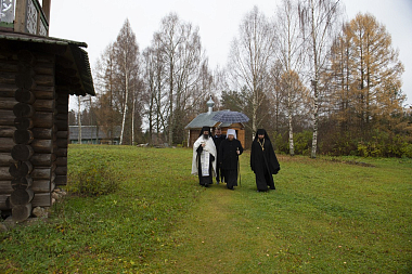По прибытии в Павло-Обнорский монастырь митрополит Игнатий помолился и приложился к раке с мощами преподобного Павла Обнорского, почивающими в деревянной часовне.