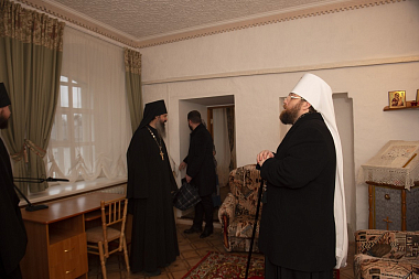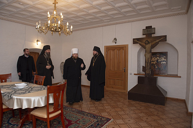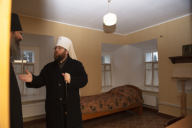 В завершение владыка Игнатий в сопровождении игумена Игнатия (Молчанова) осмотрел административные помещения, братский корпус и ознакомился с условиями проживания насельников.