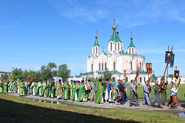По окончании литургии состоялся крестный ход с ракой мощей преподобного Далмата Исетского.