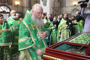 Затем в храме были прочитаны коленопреклоненные молитвы угоднику Божию и возглашены уставные многолетия.