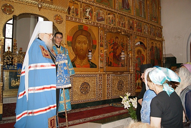 Проповедь об иконе Божией Матери «Всецарица» произнес протоиерей Александр Игнатов. Большинство молящихся причастились Святых Христовых Таин. По окончании Литургии владыка Исидор прочел молитву пред иконой «Всецарица», было пропето величание.