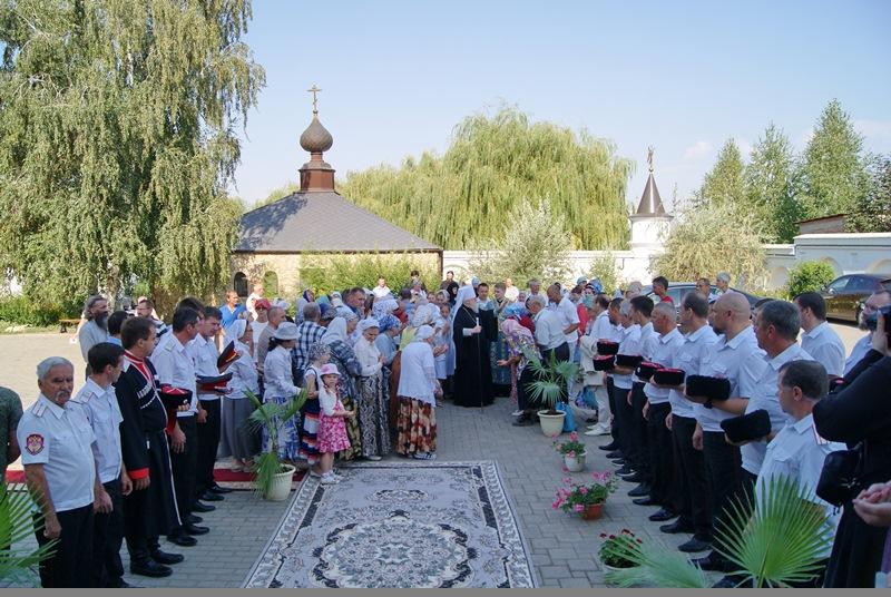 За литургией молились: настоятельница монастыря игумения Неонилла (Кузьмина) с насельницами обители, глава администрации Динского района С.А. Пономарев, прихожане и трудники обители, благодетели монастыря, представители кубанского казачества, кинорежиссеры из г. Ярославля, паломники из Адыгеи, Абхазии, городов и станиц Краснодарского края.