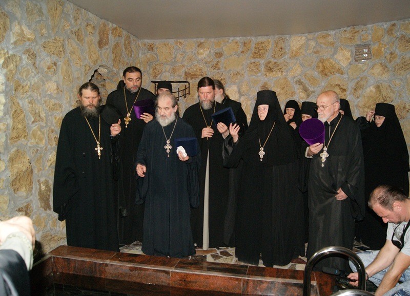Затем гости имели возможность погрузиться в купель источника Тихвинской иконы Божией Матери: миряне – в устроенную 10 лет назад большую купель, а монашествующие – в новоосвященную малую купель.