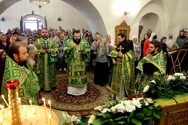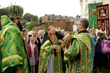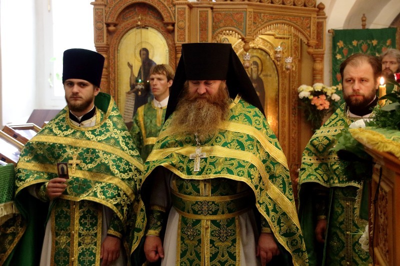 Архипастырю сослужили настоятель святой обители игумен Хрисанф (Шадронов), руководитель Службы протокола Смоленской епархии иерей Лев Гарин, настоятель храма в честь иконы Божией Матери «Взыскание погибших» в д. Соловьево Кардымовского района иерей Иоанн Цыбульский, братия монастыря в священном сане, клирики Свято-Успенского собора.