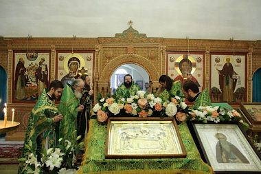 По возвращении в храм митрополит Исидор поздравил с престольным праздником игумена Хрисанфа, братию монастыря, прихожан и обратился к пастве с проповедью: