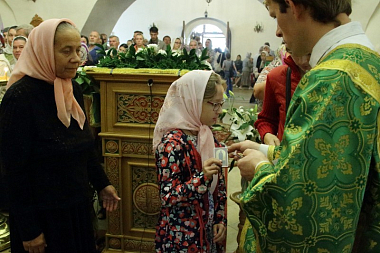 Многие взрослые и самые юные христиане, пришедшие в праздничный день в храм, причастились Святых Христовых Таин.