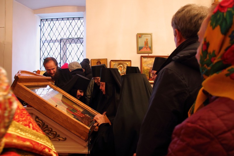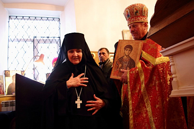 Образ святого покровителя монастыря, в свою очередь, преподнесла митрополиту Смоленскому и Дорогобужскому Исидору игумения Михаила.