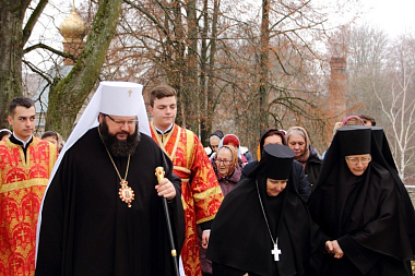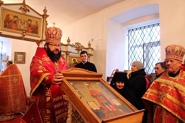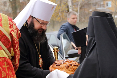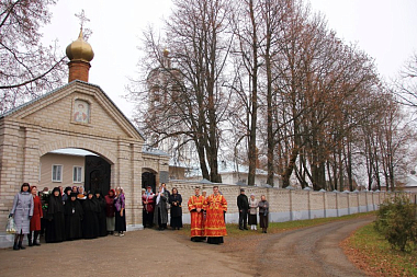 У ворот монастыря архипастыря встретили настоятельница обители игумения Михаила (Коровина) с сестрами, заместители Главы муниципального образования «Дорогобужский район» Е.С. Новицкая и Г.Н. Иванова, духовенство, прихожане и паломники.
