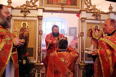 Его Высокопреосвященству сослужили благочинный Ярцевскогого округа протоиерей Василий Мовчанюк, клирик монастыря протоиерей Григорий Кикинзон, настоятель храма святых апостолов Петра и Павла г. Дорогобужа протоиерей Николай Канчук, клирики Смоленской и Рославльской епархий.