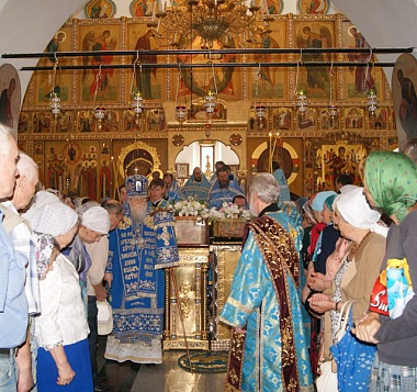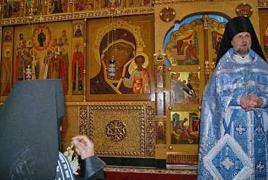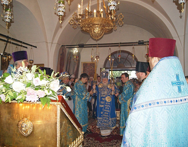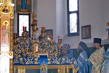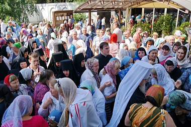 Затем Его Высокопреосвященство обратился к молящимся с архипастырским словом, поздравил игумению Неониллу, сестер, священников обители и прихожан с престольным праздником, поблагодарил за вознесенные совместные молитвы.