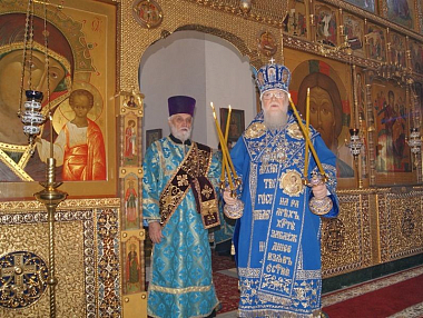 По окончании Литургии владыка Исидор прочел молитву пред иконой «Всецарица» и было исполнено величание.