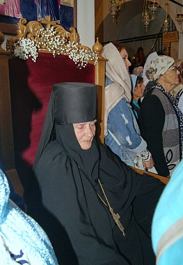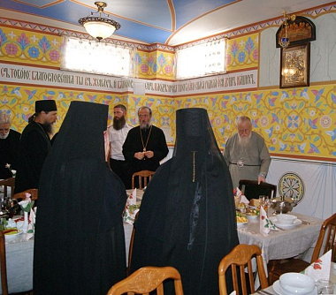 Игумения Неонилла с сестрами собрались в построенном к престольному празднику архондарике, созданном в греческом стиле и предназначенном для монашествующих гостей. Матушка Неонилла провела с сестрами духовную беседу, подчеркнула значение для монашествующих постоянной молитвы и еще раз поздравила насельниц с праздником.