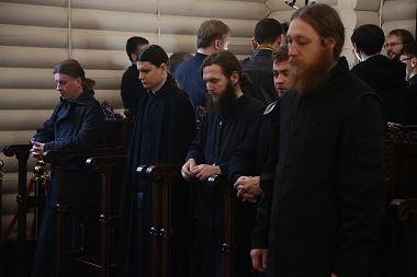 «37 лет назад руки архиерейские были возложены на Вашу главу и Вы принесли личную жертву Богу, приняв монашеский обет пред Лицом Божиим. Сегодня 37 лет, как на этот жертвенник снизошла благодать Святого Духа, благодать священства в первой степени диаконского служения. И все эти годы Вы совершали с любовью к Богу, Матери Божией богослужения. Как страницы в книге перелистывались годы, и вот уже Вы сами выносите жертву, принимая пред Лицом Божиим обеты у братии, возлагая руки, призывая Дух Святой на главы будущих монахов и священников.