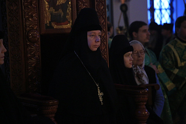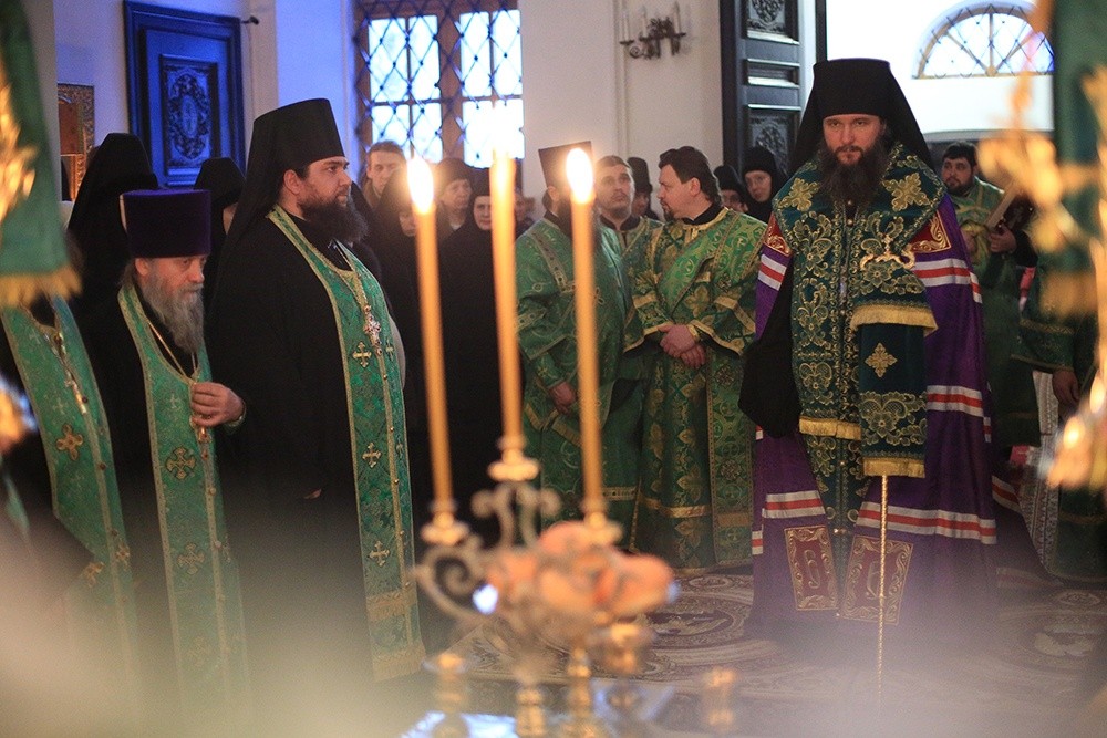 Преосвященным архипастырям сослужили: секретарь митрополита Екатеринбургского и Верхотурского иеромонах Кирилл (Корытко), наместник мужского монастыря во имя Святых Царственных страстотерпцев архимандрит Пимен (Адарченко), духовник Александро-Невской Ново-Тихвинской женской обители схиархимандрит Авраам (Рейдман), а также духовенство Александро-Невского Ново-Тихвинского женского монастыря и Екатеринбургской епархии.
