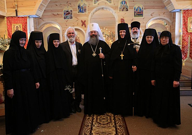 Настоятельницу Боголюбской обители приехали поздравить: настоятельница Верхотурского Свято-Покровского женского монастыря игумения Магдалина (Сулеменнева) и настоятельница Среднеуральского женского монастыря в честь иконы Божией Матери «Спорительница хлебов» игумения Варвара (Крыгина).