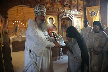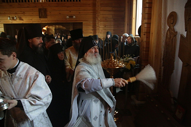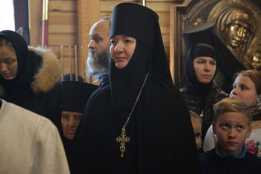 За богослужением молились насельницы женского монастыря в честь иконы Божией Матери «Спорительница хлебов» во главе с настоятельницей игуменией Варварой (Крыгиной).