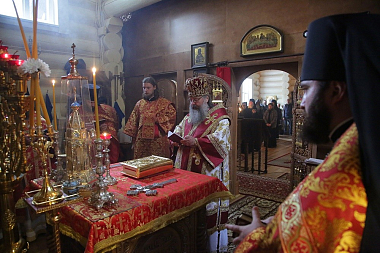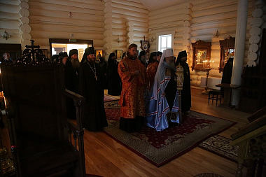 Его Высокопреосвященству сослужили: секретарь епархиального управления Екатеринбургской епархии иеромонах Кирилл (Корытко), исполняющий обязанности наместника Царской обители иеромонах Мелитон (Зыбин), братия обители в священном сане и клирики Екатеринбургской епархии.