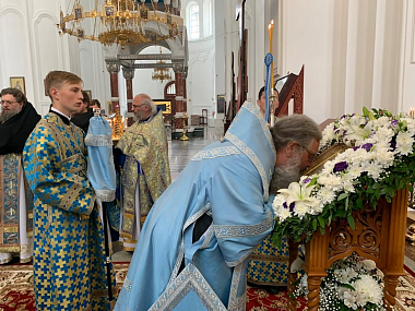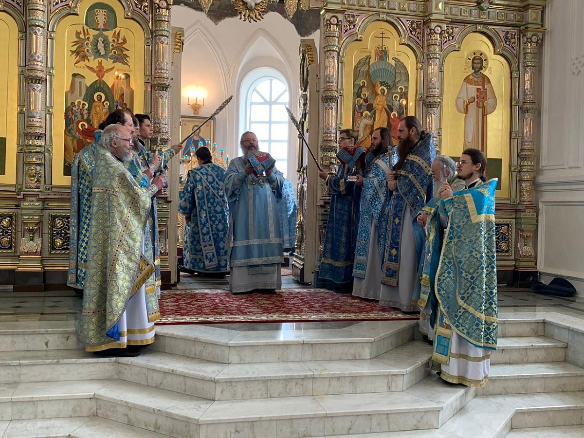Его Высокопреосвященству сослужили: секретарь епархиального управления Екатеринбургской епархии иеромонах Кирилл (Корытко), наместник Свято-Николаевского монастыря игумен Иероним (Миронов), советник правящего архиерея по правовым вопросам, настоятель храма «Большой Златоуст» г. Екатеринбурга иерей Виктор Явич, братия обители в священном сане и клирики Екатеринбургской епархии.