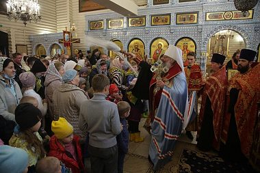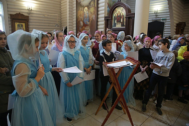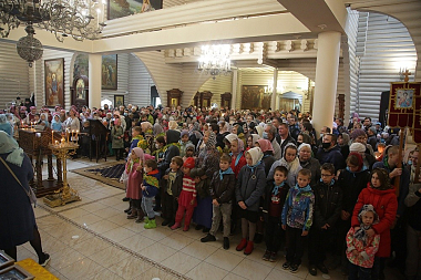 За богослужением молились дети – воспитанники воскресных и общеобразовательных школ, родители, педагоги, кадеты и представители молодежных приходских организаций патриотической направленности.