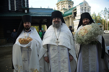 Его Высокопреосвященству сослужили: секретарь епархиального управления Екатеринбургской епархии иеромонах Кирилл (Корытко); благочинный Монастырского округа, наместник Свято-Николаевского Верхотурского монастыря игумен Иероним (Миронов); исполняющий обязанности наместника Царской обители иеромонах Мелитон (Зыбин); ректор Екатеринбургской духовной семинаии иеромонах Корнилий (Зайцев); руководитель отдела Екатеринбургской епархии по делам молодежи и миссии иерей Даниил Рябинин; руководитель Музея святости и исповедничества на Урале в ХХ веке иеромонах Аркадий (Логинов); благочинный монастыря иеромонах Иоанн (Неврюев); братия обители в священном сане и клирики Екатеринбургской епархии.