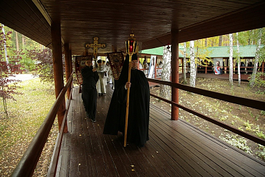За богослужением был совершен крестный ход вокруг места, давшего начало обители Царственных страстотерпцев, – шахты № 7.