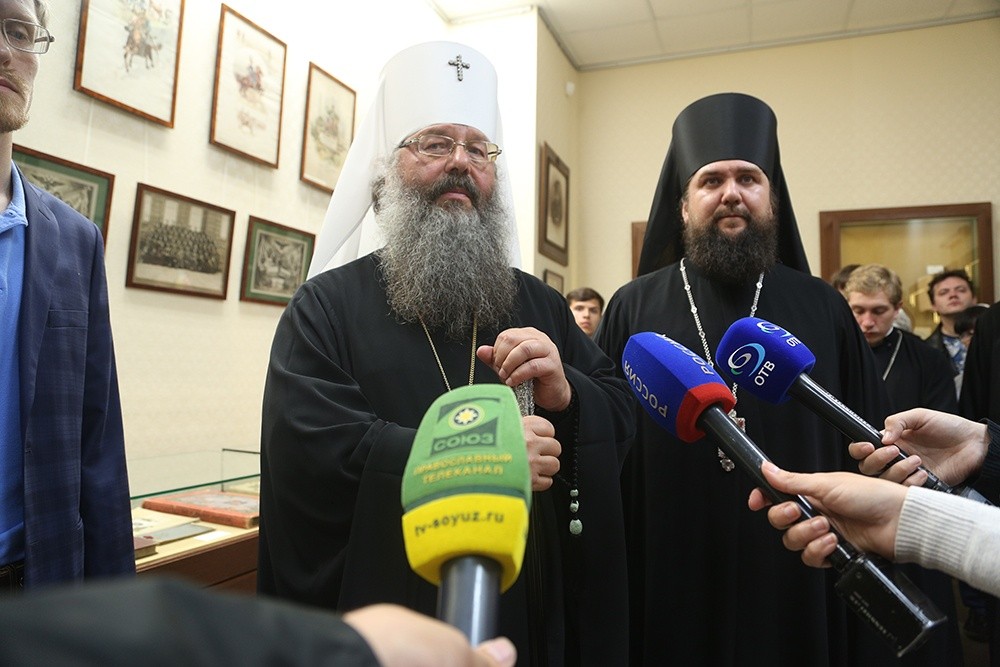 Затем митрополит Кирилл открыл выставку, посвященную царской семье, в которую вошли уникальные вещи и экспонаты, принадлежавшие императору Николаю II.