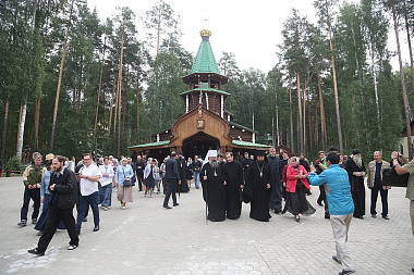 Его Высокопреосвященству сослужили: наместник мужского монастыря во имя Царственных страстотерпцев архимандрит Пимен (Адарченко); руководитель Миссионерского отдела Екатеринбургской епархии иерей Даниил Рябинин; духовенство монастыря и епархии.