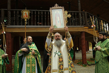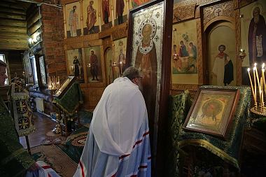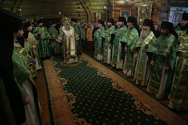 Накануне владыка совершил в этом же храме всенощное бдение с чтением акафиста преподобному Сергию.