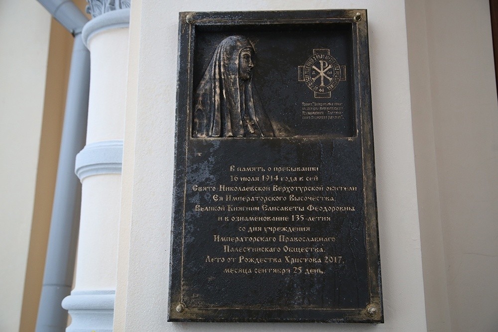 «В память о пребывании 16 июля 1914 года в сей Свято-Николаевской Верхотурской обители Ее Императорского Высочества и Великой княгини Елисаветы Феодоровны и в ознаменование 135-летия со дня учреждения Императорского православного палестинского общества лета от Рождества Христова 1917 года месяца декабря 31 (18) дня», – написано на второй табличке, освященной в этот день Высокопреосвященнейшим владыкой.