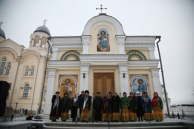Песнопения Божественной литургии исполнил хор духовенства Екатеринбургской епархии под управлением иерея Алексия Русина.