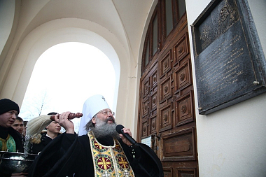 Торжественный чин освящения мемориальных плит по окончании Божественной литургии возглавил митрополит Екатеринбургский и Верхотурский Кирилл.